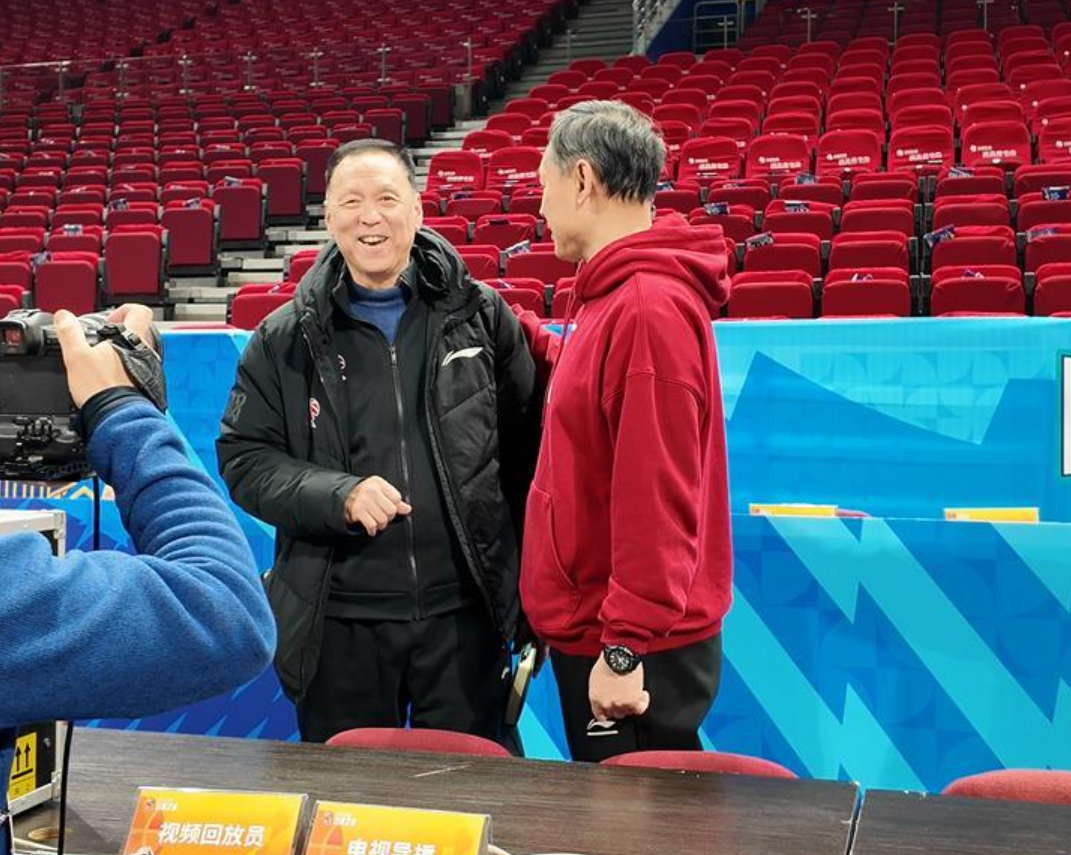 2026年3月16日北京会和天津进行一场常规赛,中午踩场训练的时候,许利民和张德贵的关系还非常好,两个人洽谈了一段时间,整个过程都是嘻嘻哈哈的,关系非常好。